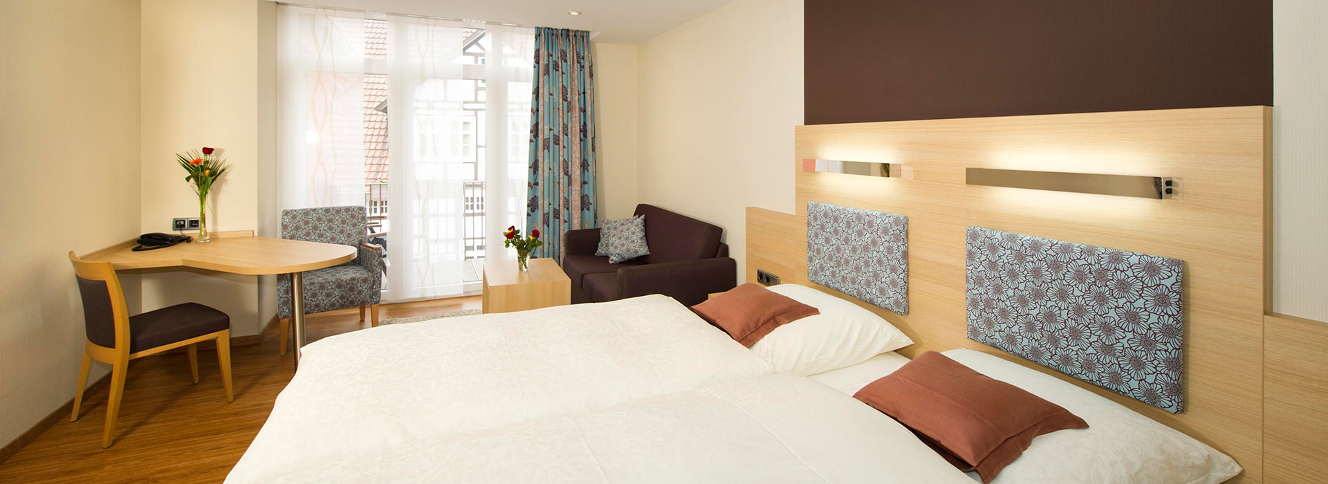 Unsere Komfort Doppelzimmer bieten Ihnen alles für einen erholsamen und entspannenden Urlaub in Bad Laer.